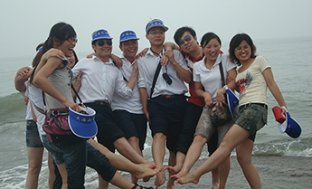 火爆網(wǎng)全體員工在燈塔前的合影留念